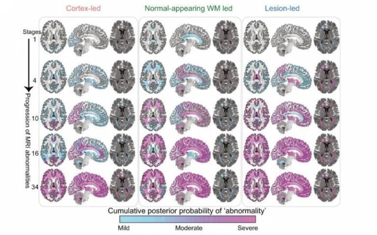 It identified an aggressive "early sNfL" subtype with rapid brain lesion development and a slower "late sNfL" subtype where brain shrinkage occurs before other damage is apparent.