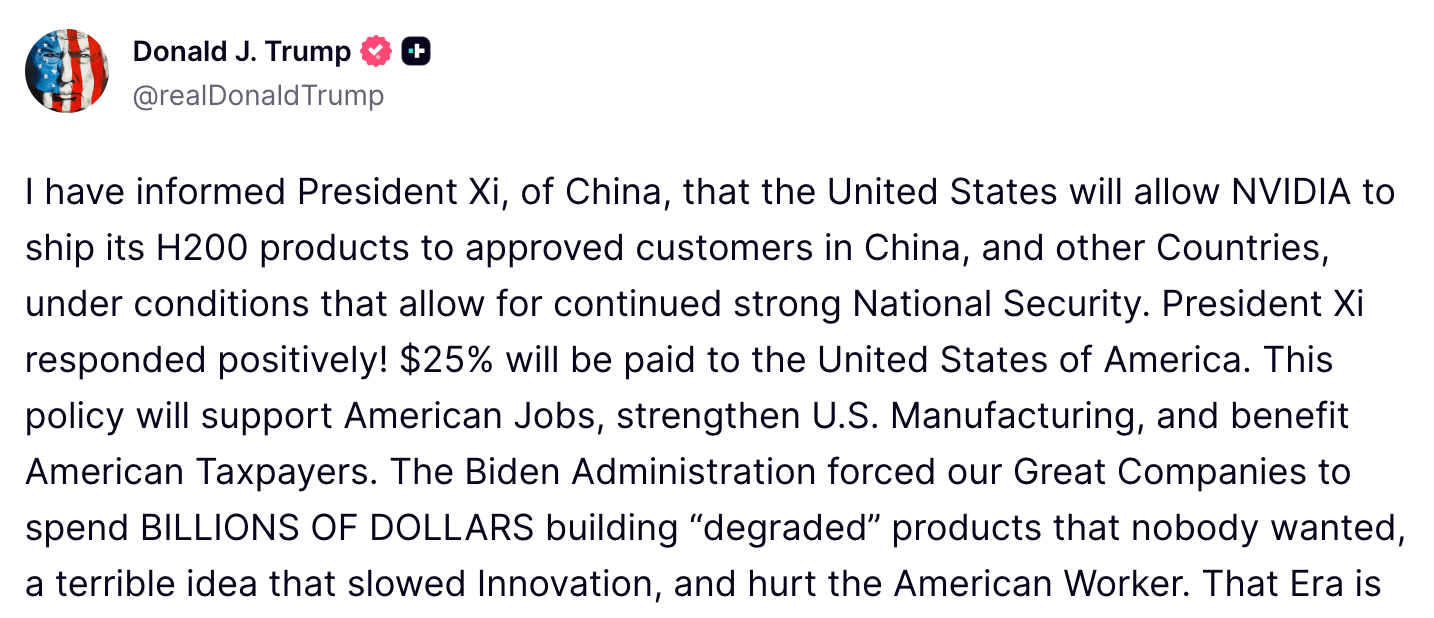 Bottom line: This policy re-opens a massive market for Nvidia, positioning its technology to remain the global standard even as it keeps the most advanced chips off the table. It signals a strategic shift from total restriction to managed competition in the global race for AI dominance.